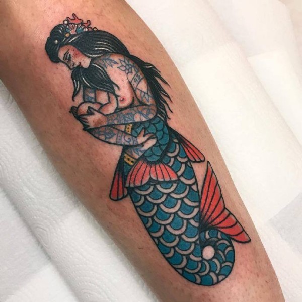 纹身美人鱼 魅力动人的美人鱼纹身图案