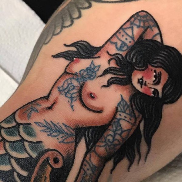 一组oldschool风格的美人鱼纹身图片