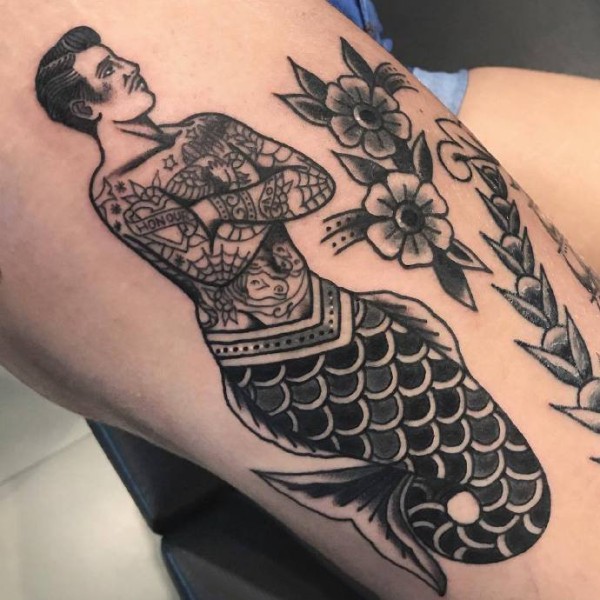 纹身美人鱼 魅力动人的美人鱼纹身图案