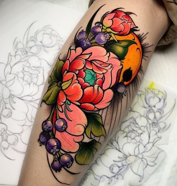 逼真的超现实主义花纹身图案来自纹身师莫拉莱斯