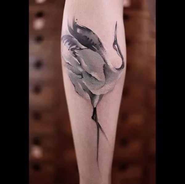 仙鹤纹身--中国风水墨元素的一组仙鹤纹身图案作品