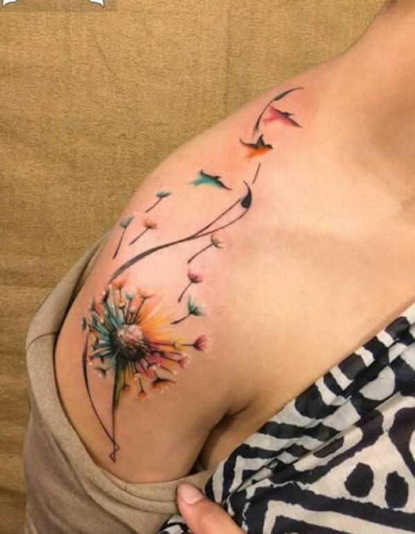 纹身菊花图案 女生肩膀上唯美的菊花纹身图片