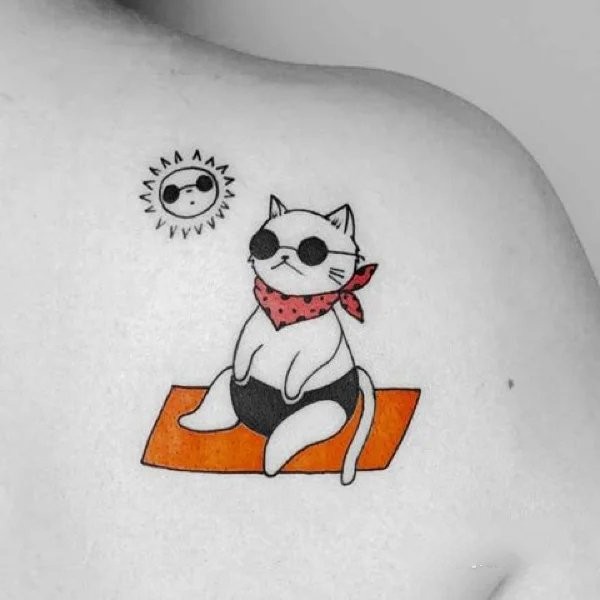 一组可爱的度假猫咪纹身图片