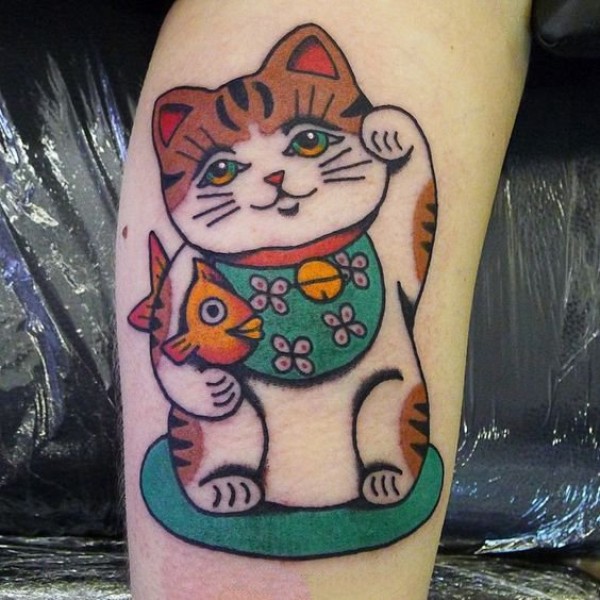 纹身招财猫图案 9款可爱的招财猫主题纹身图案