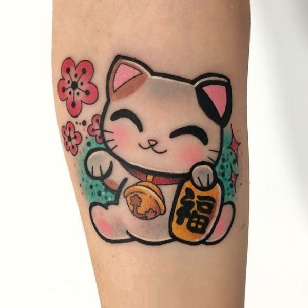 纹身招财猫图案 9款可爱的招财猫主题纹身图案
