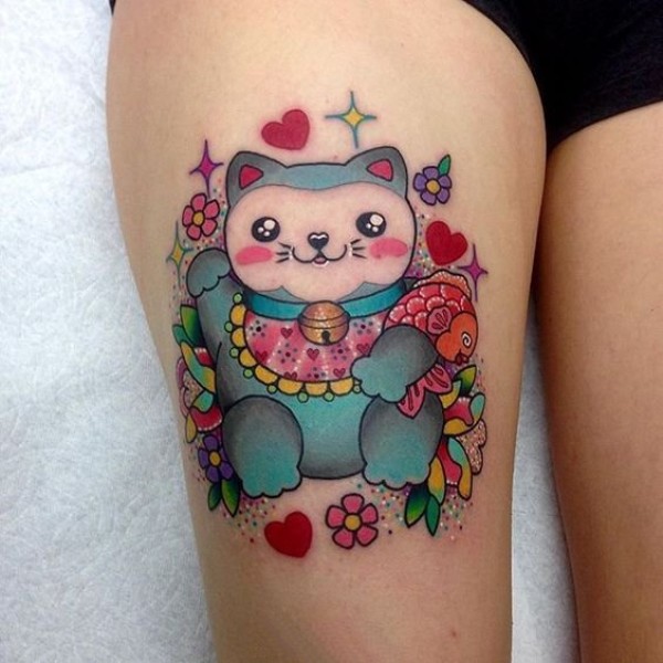 卡哇伊的9张彩色卡通招财猫纹身图案