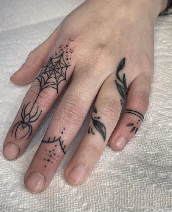 情侣恋人手指关节上的各种指环纹身图案