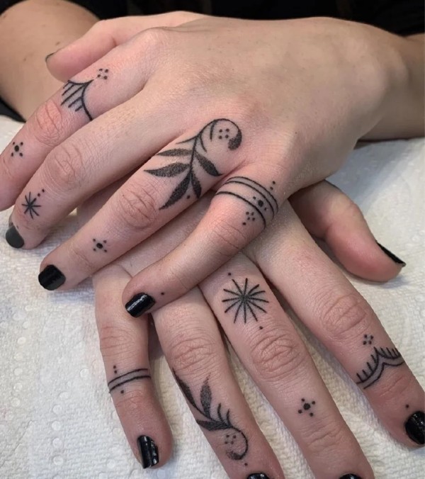 情侣恋人手指关节上的各种指环纹身图案