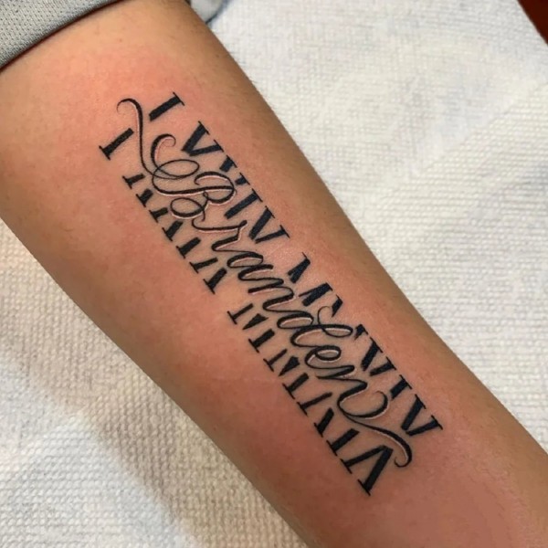 英文字母纹身--9张手臂胳膊上的简约英文字母纹身图案图片