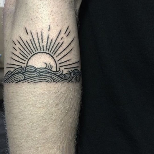 25款男性黑色手臂线条纹身点刺技巧半甲纹身图案