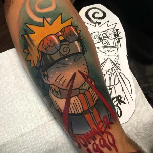 手臂上的火影忍者鸣人佐助卡卡西等角色动漫纹身图案