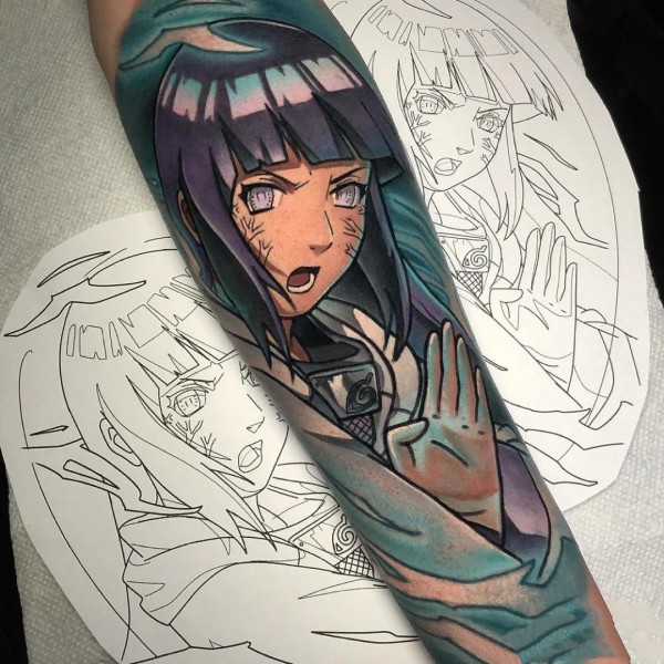 手臂上的火影忍者鸣人佐助卡卡西等角色动漫纹身图案