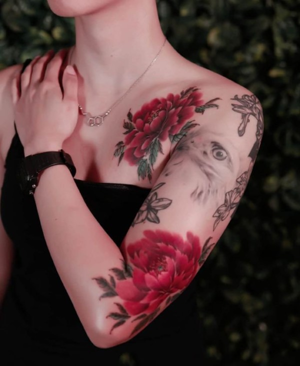 女性身上的9张性感红色花卉纹身图片