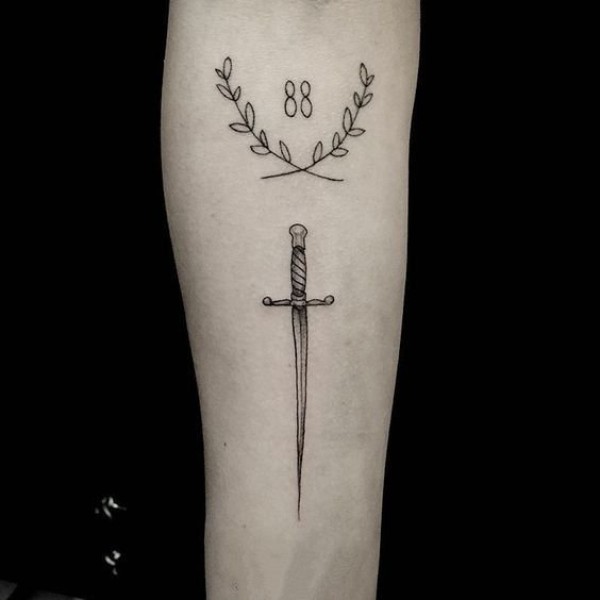 小剑纹身 黑灰色的一组9张小剑纹身图案