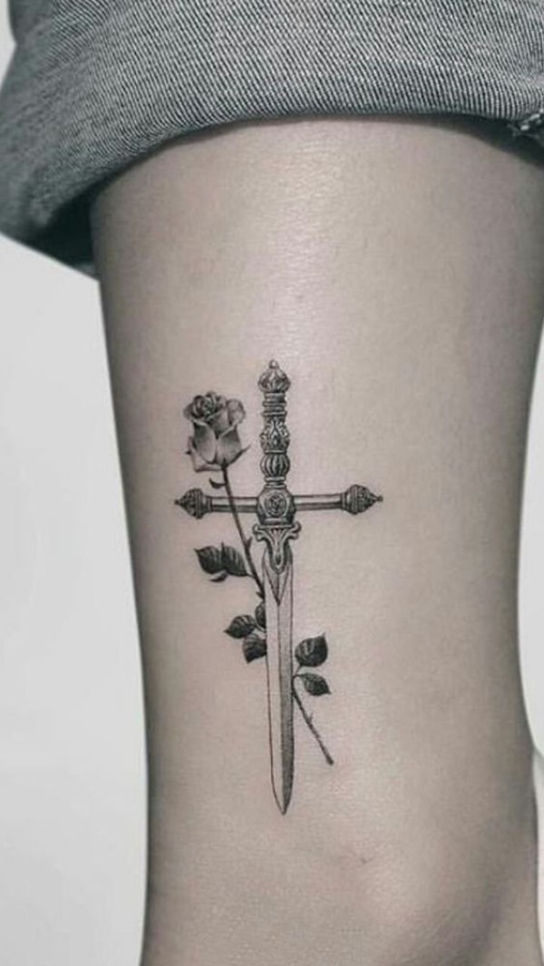 小剑纹身 黑灰色的一组9张小剑纹身图案