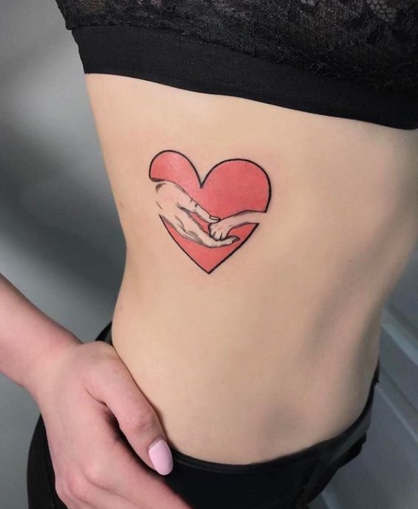 女生锁骨下黑灰素描点刺技巧创意比心纹身图片