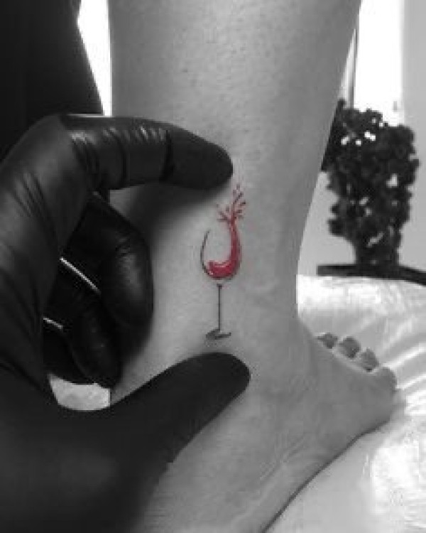 脚踝彩色泼墨酒杯藤蔓纹身图案