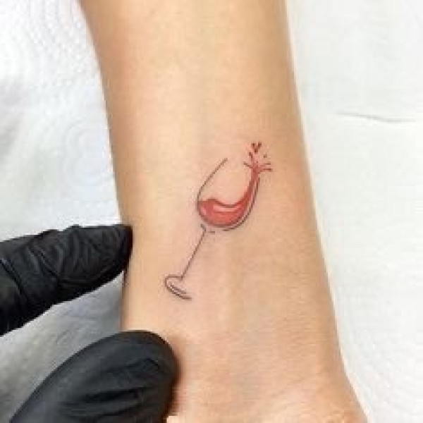脚踝彩色泼墨酒杯藤蔓纹身图案
