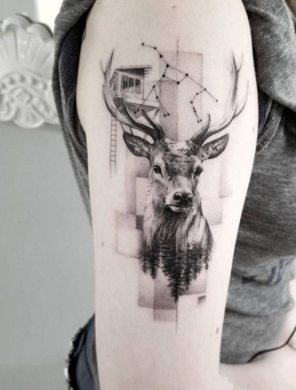 生财有“鹿”,各种风格的鹿纹身图片9张