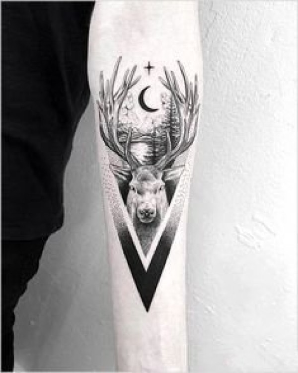 小臂鹿头几何纹身图案