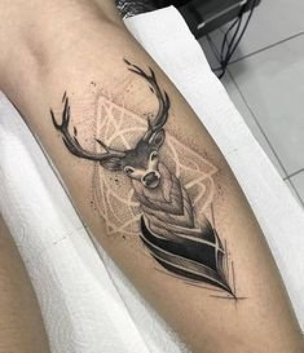 小臂鹿头几何纹身图案