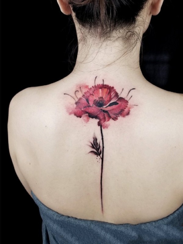 罂粟花纹身图--几张红色艳丽的唯美罂粟花纹身图案作品