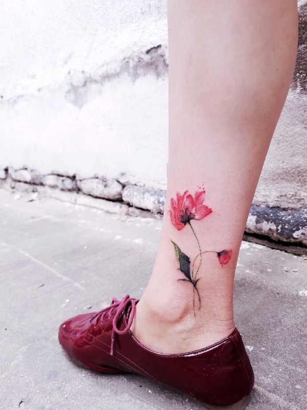 罂粟花纹身图--几张红色艳丽的唯美罂粟花纹身图案作品