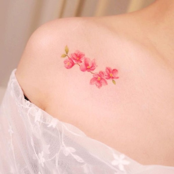 肩花纹身--一组适合肩部的黑灰肩花纹身图案欣赏