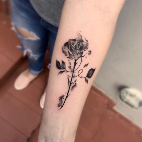 欧美玫瑰纹身 男生手臂上花朵纹身图片