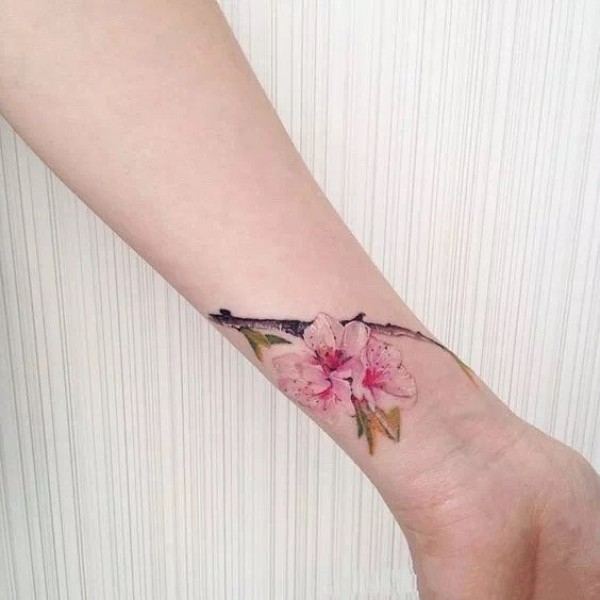 纹在手臂胳膊上的黑灰素花花卉纹身图案欣赏