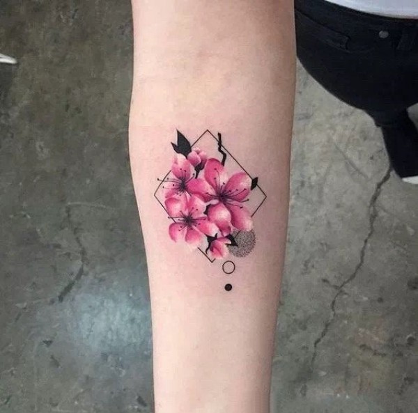 纹在手臂胳膊上的黑灰素花花卉纹身图案欣赏