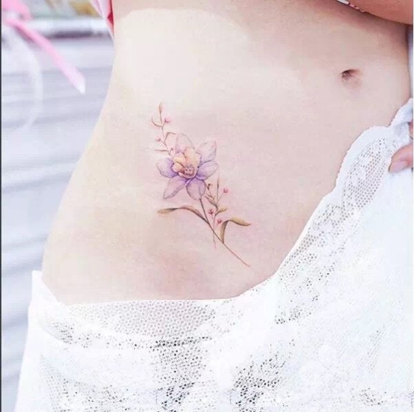 性感花朵纹身--女性大腿侧部性感的花朵纹身
