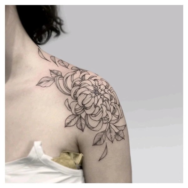 肩花纹身--一组适合肩部的黑灰肩花纹身图案欣赏