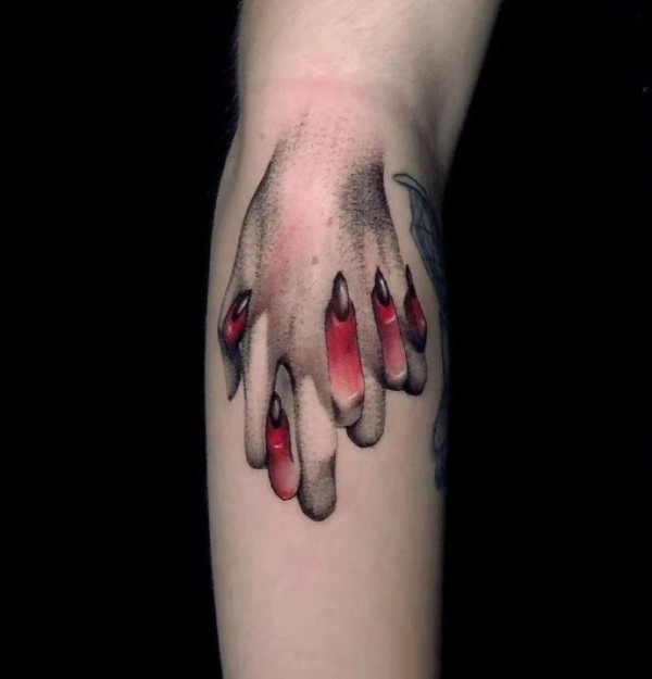 手臂上黑色简易诡异画风纹身图案来自杰克·沃茨
