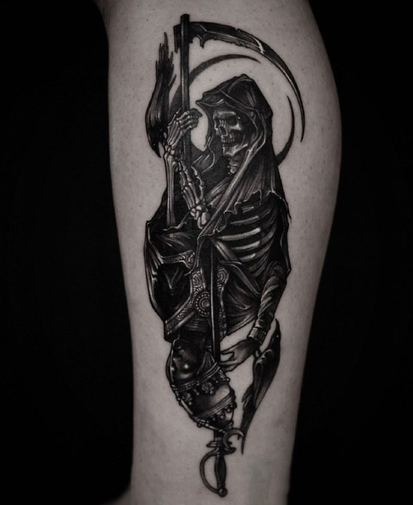 超帅时尚的黑灰骷髅与蛇纹身图案