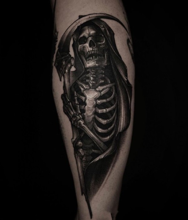 超帅时尚的黑灰骷髅与蛇纹身图案
