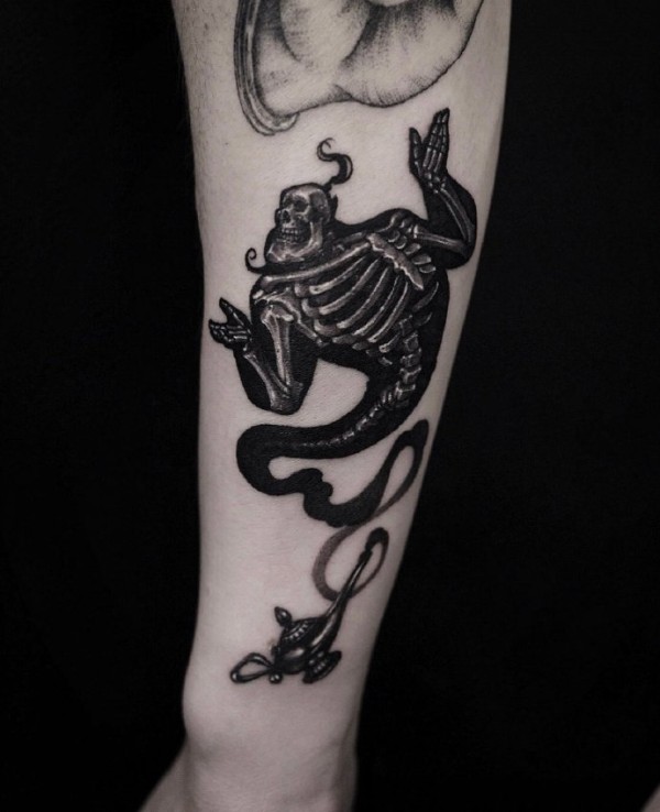 超帅时尚的黑灰骷髅与蛇纹身图案