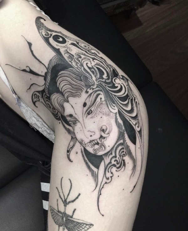 能面万媚纹身手稿_52张日式能剧面具纹身手稿图案素材欣赏