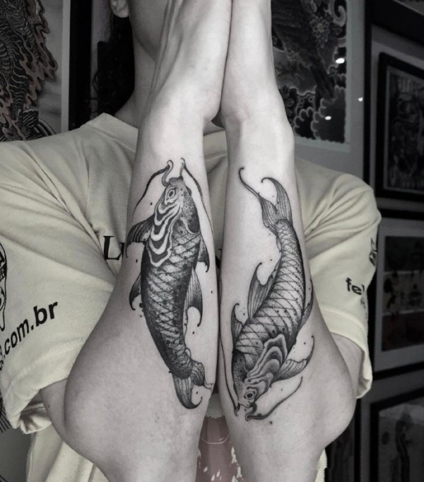 双鱼座纹身手稿_45张十二星座之双鱼手稿纹身图案