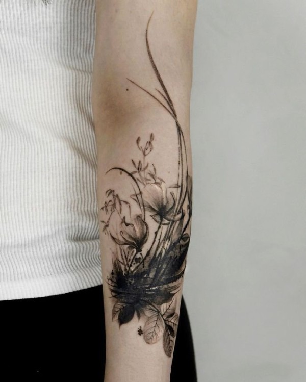 一组大胆的水彩泼墨彩绘技巧渐变纹身图案大全