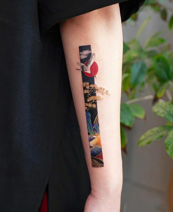 仙鹤纹身--中国风水墨元素的一组仙鹤纹身图案作品