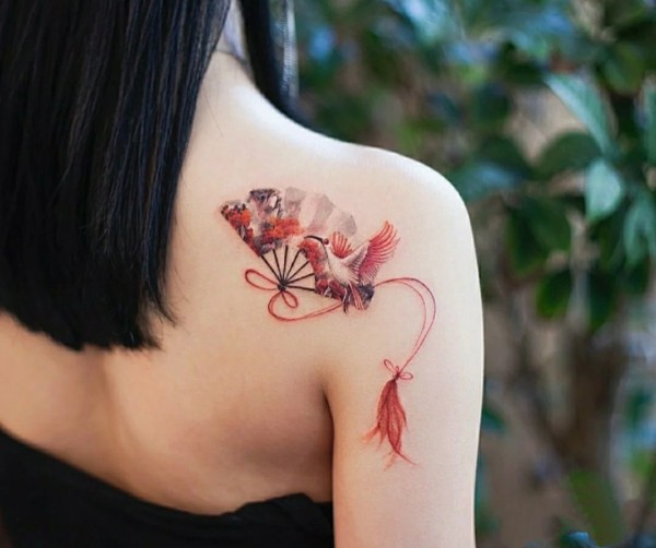 仙鹤纹身--中国风水墨元素的一组仙鹤纹身图案作品