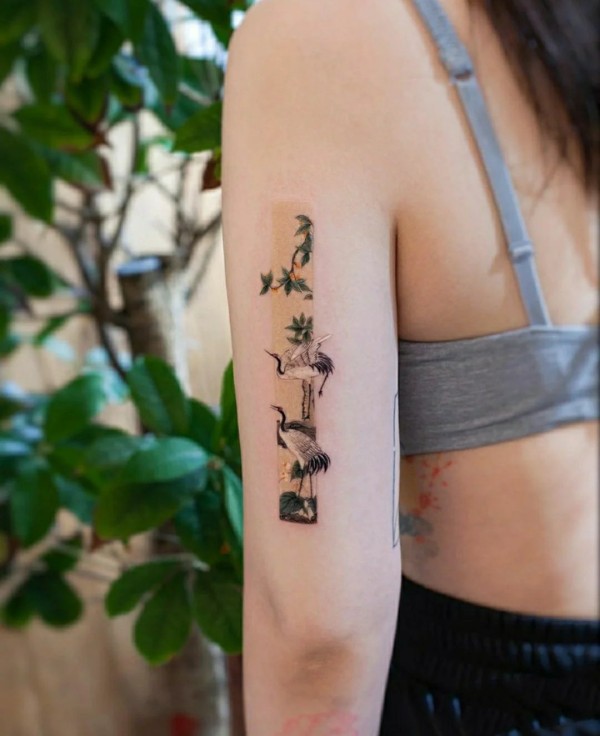 仙鹤纹身--中国风水墨元素的一组仙鹤纹身图案作品