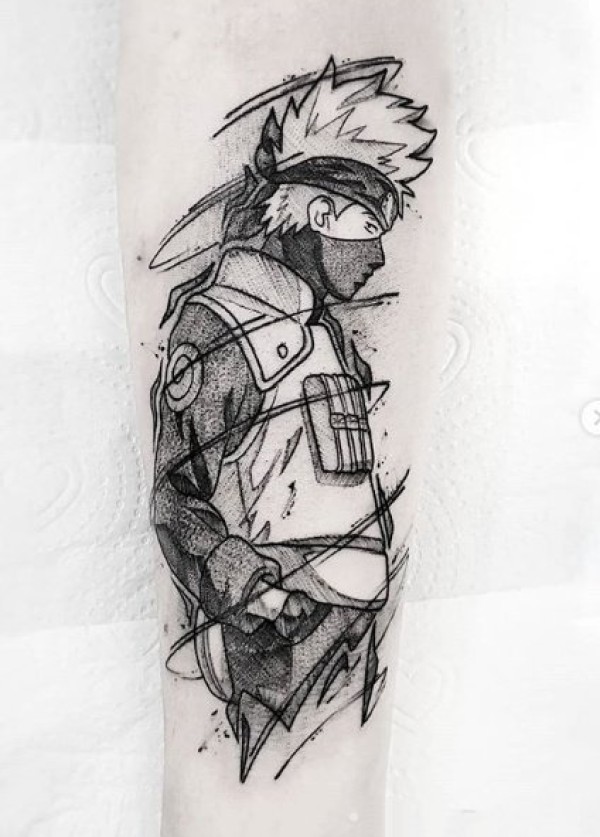 手臂上的火影忍者鸣人佐助卡卡西等角色动漫纹身图案