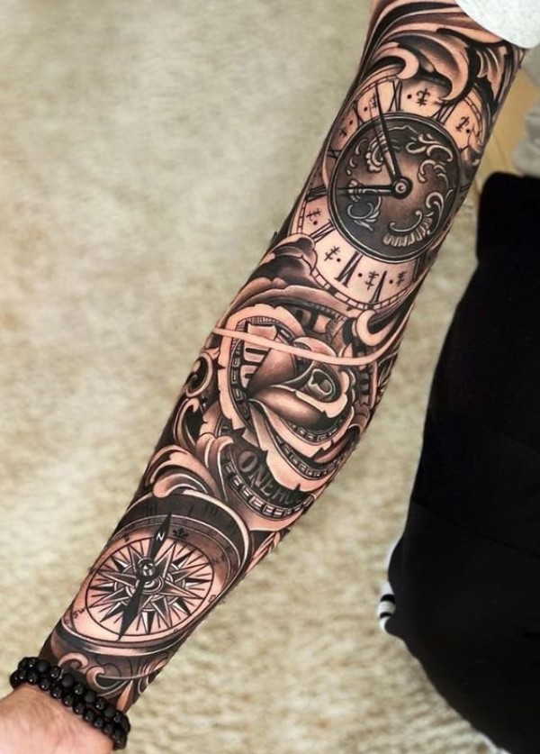 传统风格的一组男性花臂和花腿纹身图案欣赏