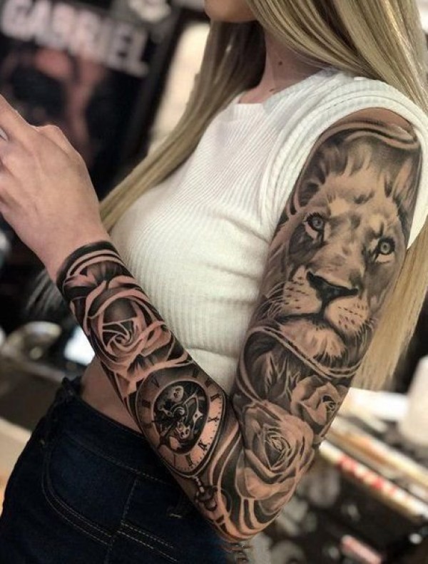 欧美花臂纹身_22张霸气黑灰欧美大黑花臂纹身图案作品图片