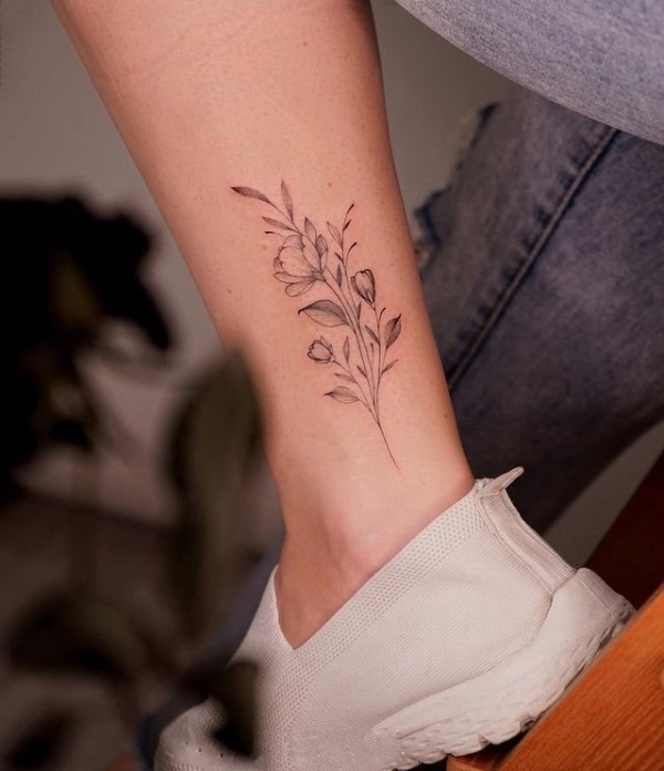 9张脚踝花卉纹身图案,与鞋子完美的搭配