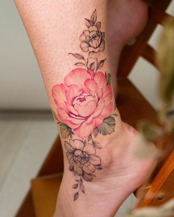 9张脚踝花卉纹身图案,与鞋子完美的搭配