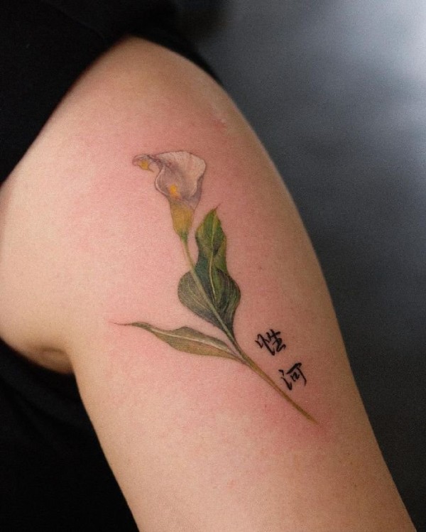 纹在手臂胳膊上的黑灰素花花卉纹身图案欣赏
