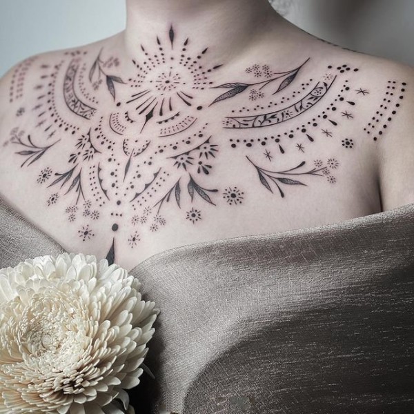 女性大花胸纹身_43张霸气漂亮的女性大花胸纹身图案作品